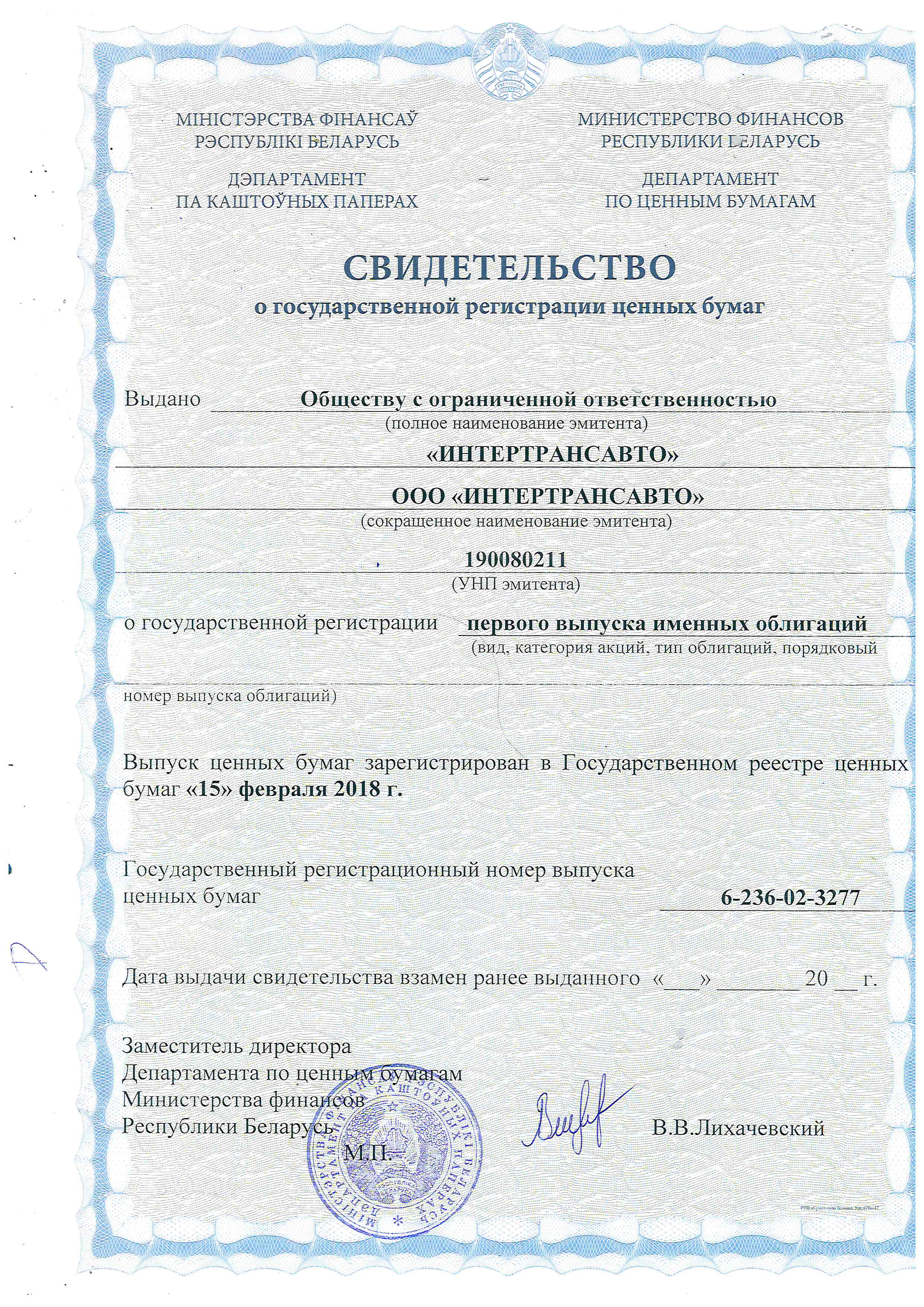 Ценные бумаги ООО "ИНТЕРТРАНСАВТО".